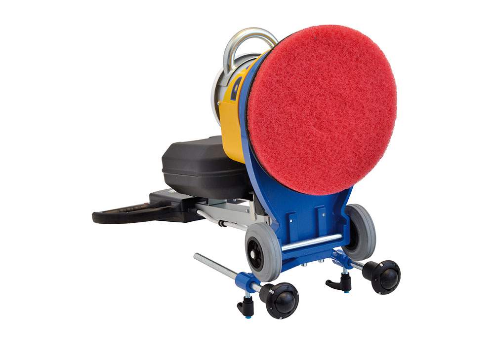 Kompakte und leicht zu bedienende Einscheibenmaschine für das Polieren von enge und schwer zugängliche Flächen und Treppen. Die einstellbare Höhe der Kegelräder ermöglichen einen einfachen Transport auf Treppen. Es kann ein Treibteller, wie auch eine Bürste mit einem Durchmesser von 330mm oder 280mm benutzt werden. Der leistungsstarke Motor mit 1,7 Hp ermöglicht der Maschine Baby die Benutzung von PLANETARIO K100 um kleine Flächen wie Treppen, Bäder und Küchen zu schleifen und polieren.