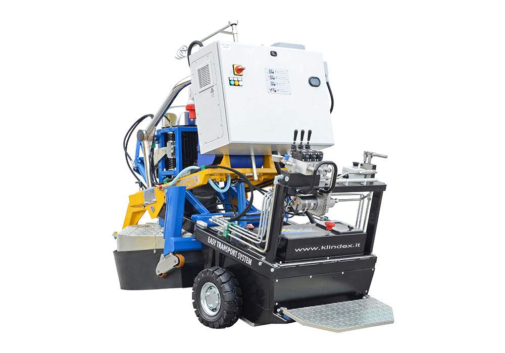 Das Kegelrollenlager, der starke Motor, das stabile Gestell, das dritte Vorderrad und die Benutzerfreundlichkeit machen die Hauptmerkmale: zur zuverlässigsten Maschine für Schleifarbeiten, auch auf sehr unebenen Böden. Expander 1000 beinhaltet alle Merkmale der vorherigen Version, allerdings mit dem Unterschied, dass die Neigung des Kopfes zum Werkzeugwechsel durch eine Pumpe geschieht. Die Pumpe wird manuell durch einen Hebel gestartet. Alle weiteren Betriebssysteme, wie die Einstellung der Druckund der Vorschubgeschwindigkeit, sowie das einfache Werkzeugwechselsystem sind Standard. Das Getriebe ist komplett mit thermo-gehärteten Zahnrädern ausgestattet.