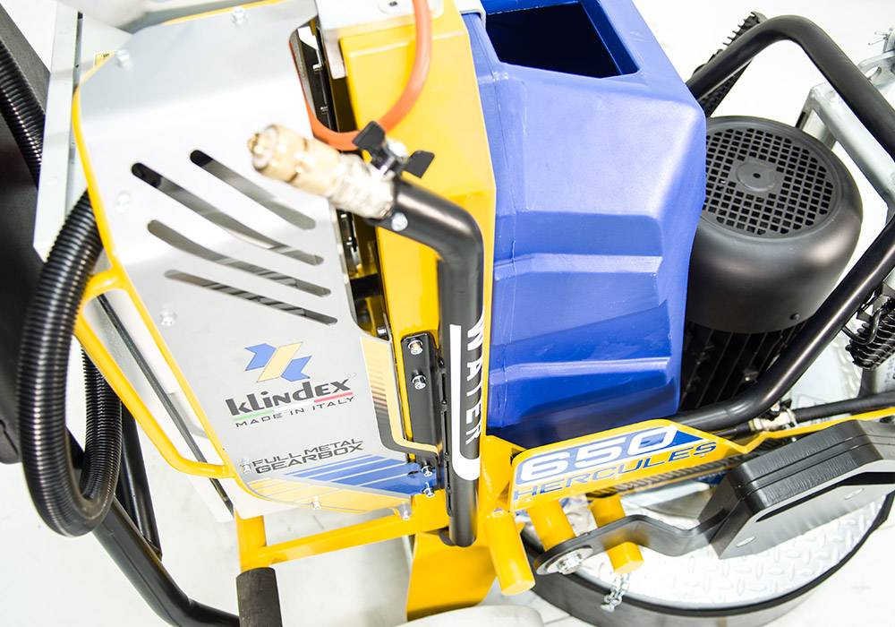 Hauptmerkmale: Arbeitsbreite von 650mm und 3 Werkzeughalter Ø 240mm. 600-1300 U/min. Starkes Zahnradgetriebe mit Thermogehärteten Stahlzahnrädern für lange Lebensdauer. Kein großer Geräuschpegel während des Schleifens. Automatisch nivellierendes Planetensystem. Unverwechselbares Italienisches Design.