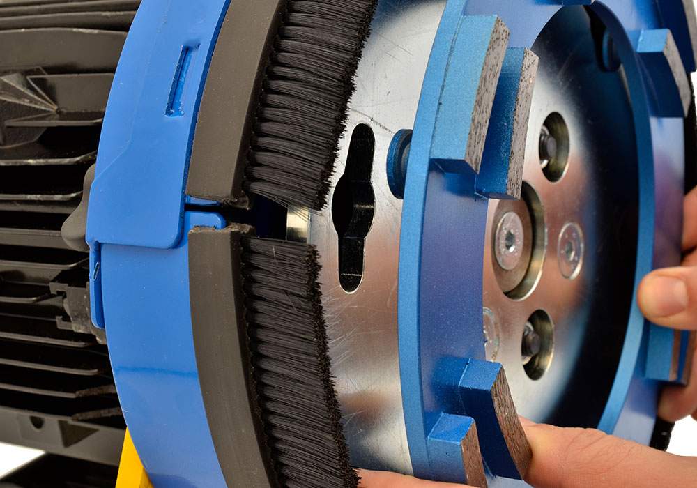 Rotoklin 240 is the perfect machine for small and medium sizes surfaces treatments such as the preparation of flat surfaces, the levelling, the preparation of the concrete before painting, the removing of coating defects or adhesives, mastic, paints, resins and more, the repairing of damaged concrete, the grinding of rough surfaces, the restoration of rain marks, etc…